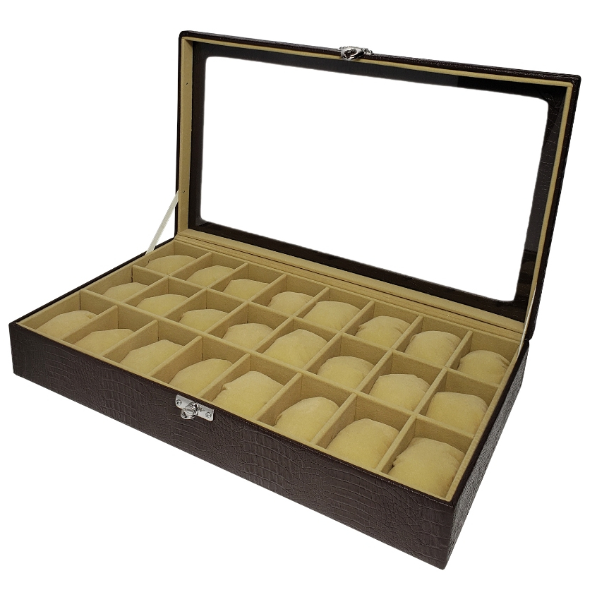 Comprar na ShopeeOrganizador Para 24 relógios com Vidro Marrom Interno Bege com Tampa de Vidro