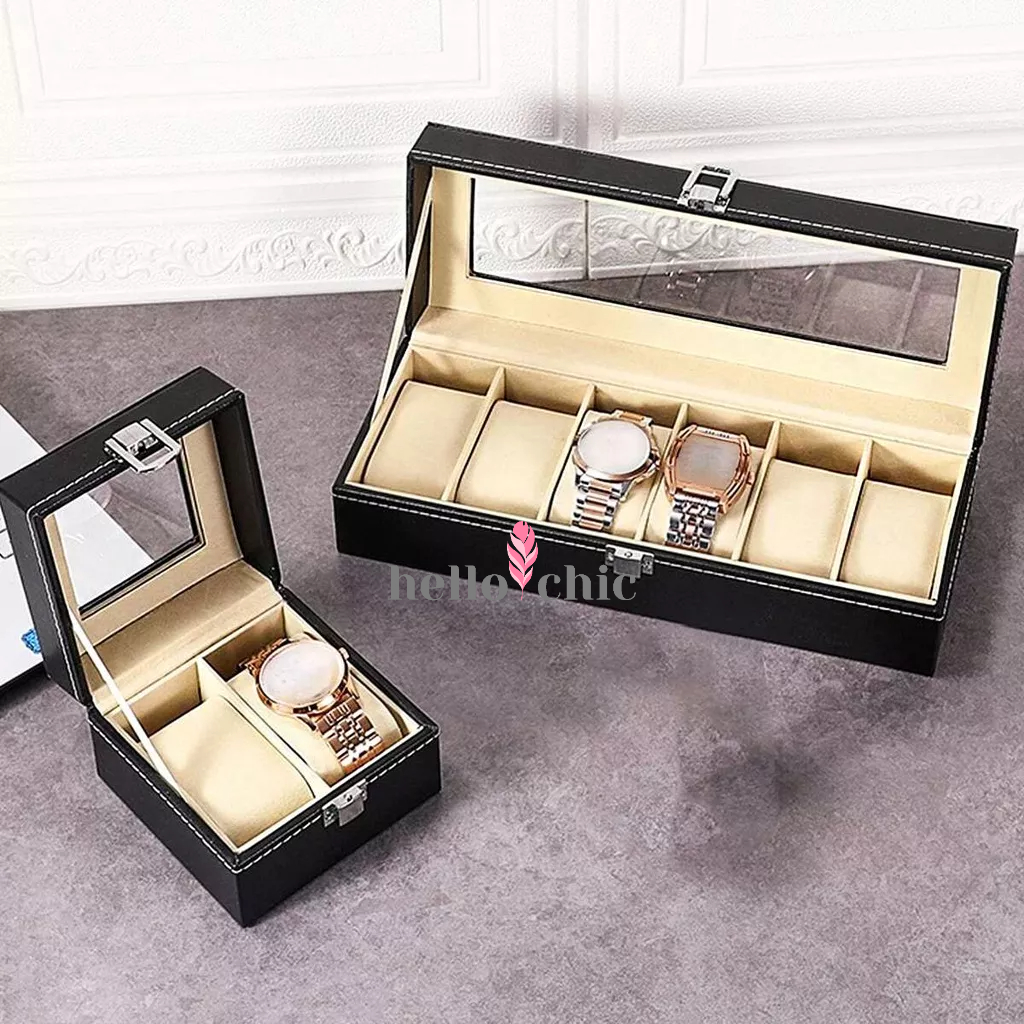 Comprar na ShopeeOrganizador Para 24 relógios com Vidro Preto Interno Bege com Tampa de Vidro
