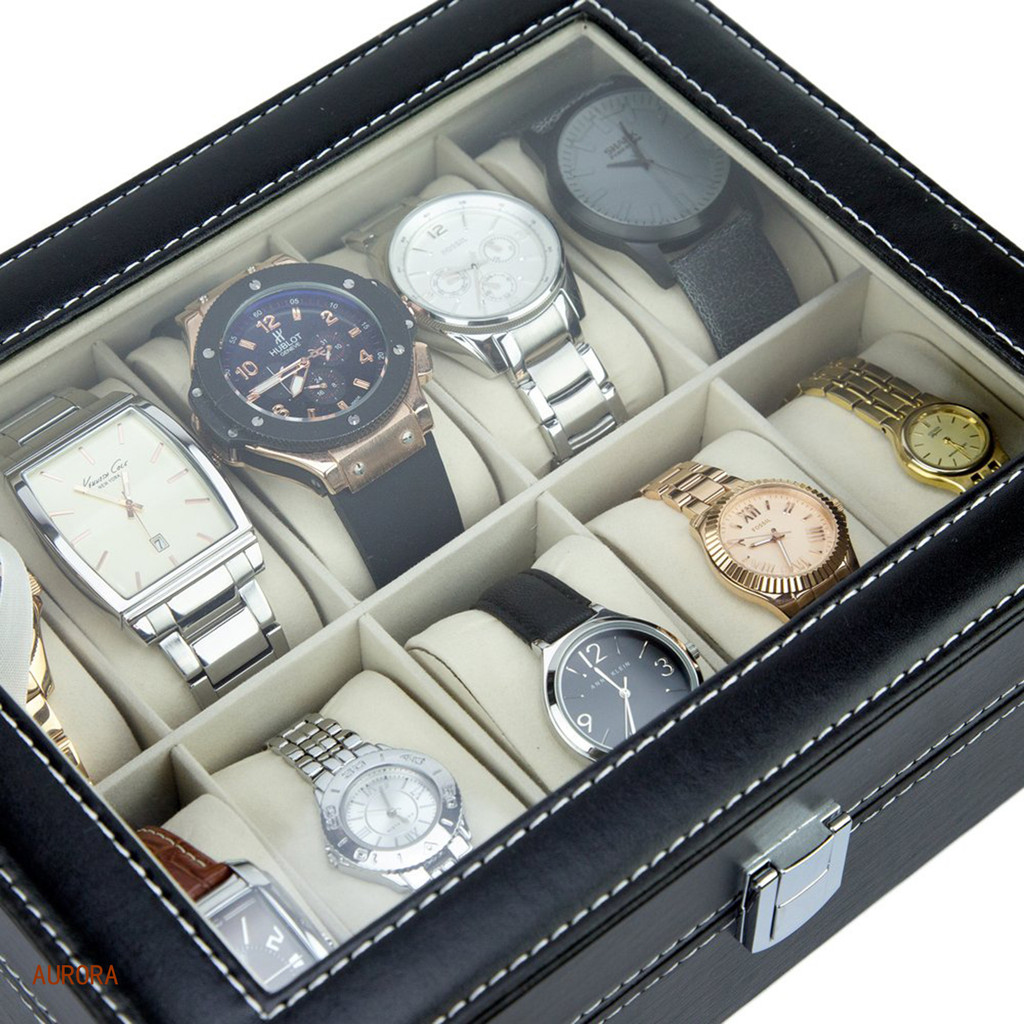 Case Estojo Porta Relógio Para/ Viagem Couro Sintético Almofadas RemovíVeis