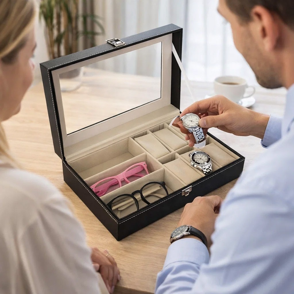 Porta Relógios Caixa Estojo Para 12 Relógios Luxo CBRN10493