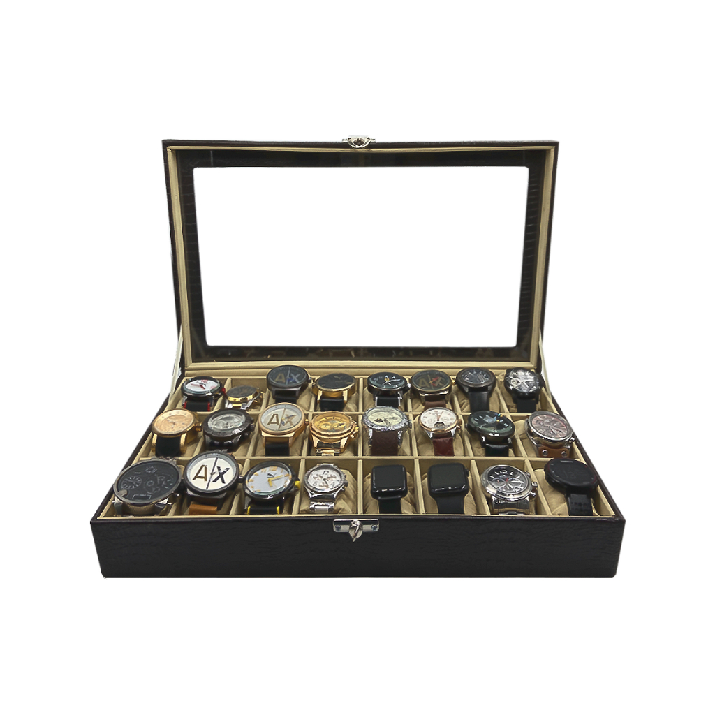 Caixa Porta Relógio 06 Lugares e 12 lugares Em Couro Sintético