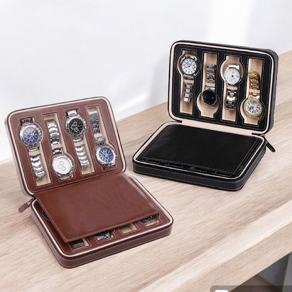 Estojo Caixa Maleta P/8 Relógio Couro Com Zíper Viagem Luxo Porta Relógio