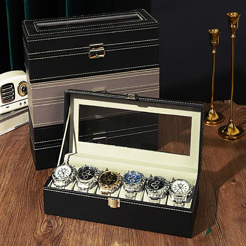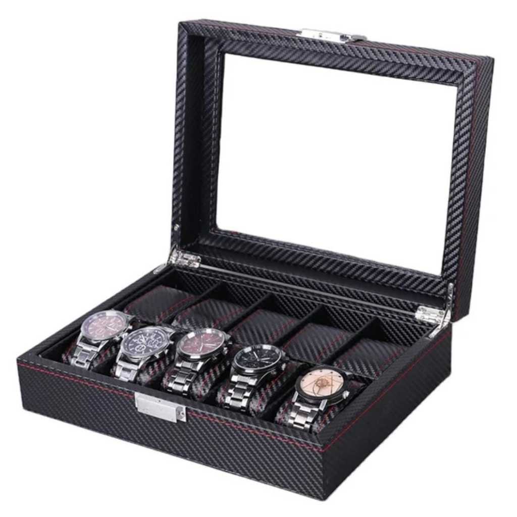 Porta Relógio 6 Divisórias Estojo Organizador Aveludado Luxo Maleta Caixa