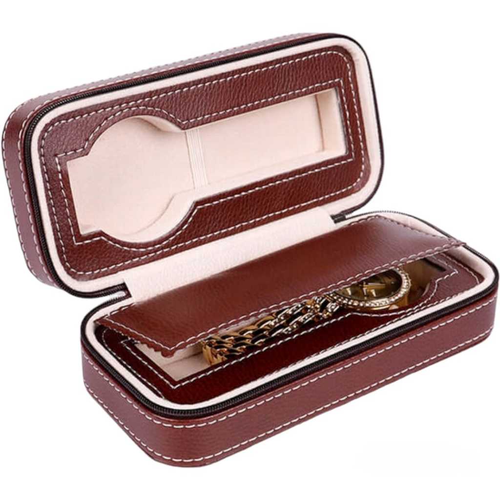 ESTOJO ORGANIZADOR PARA 2 RELOGIOS LUXO EM COURO E ZIPER