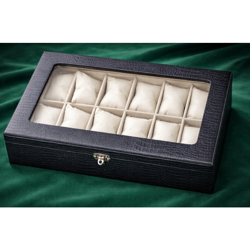 Organizador Para 24 relógios com Vidro Preto Interno Cinza