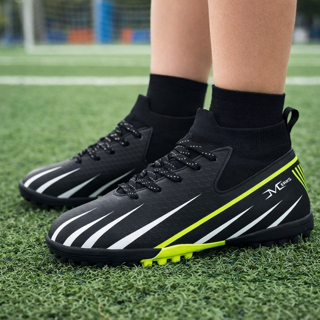 Chuteira Society Infantil Meinha Grama Sintética Calce Facil Meia Cano Baixo Criança Merks