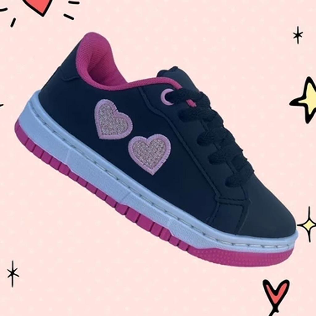 Tênis Infantil Feminino Costurado Menina Love Glitter Barato Escolar para Festas e Passeios