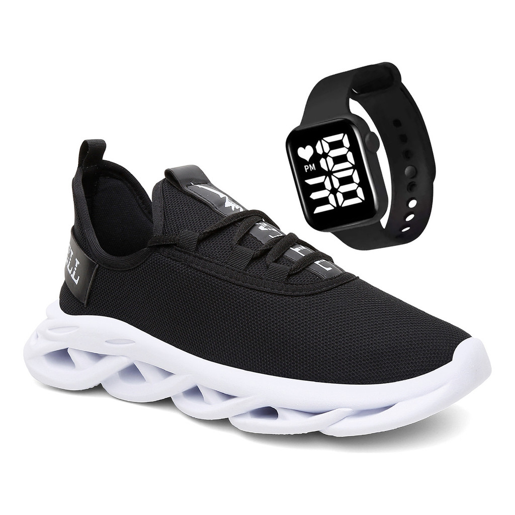Kit Tênis Masculino Feminino Esportivo Conforto Academia + Relógio Brinde