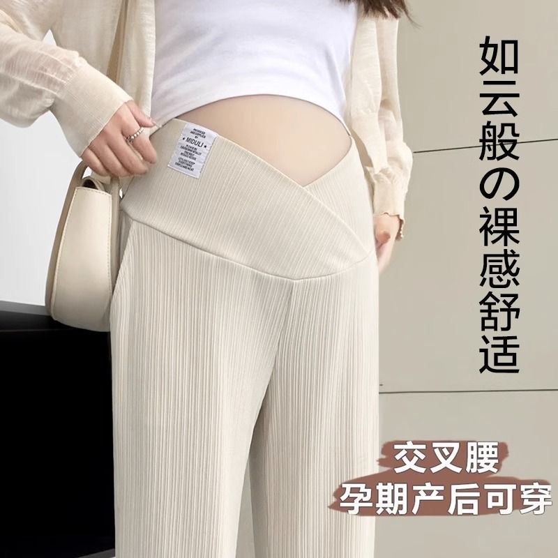 Xiyue Calças para levantamento de barriga para mulheres grávidas 2024 Primavera Outono Novo estilo Fio de seda gelada Ca