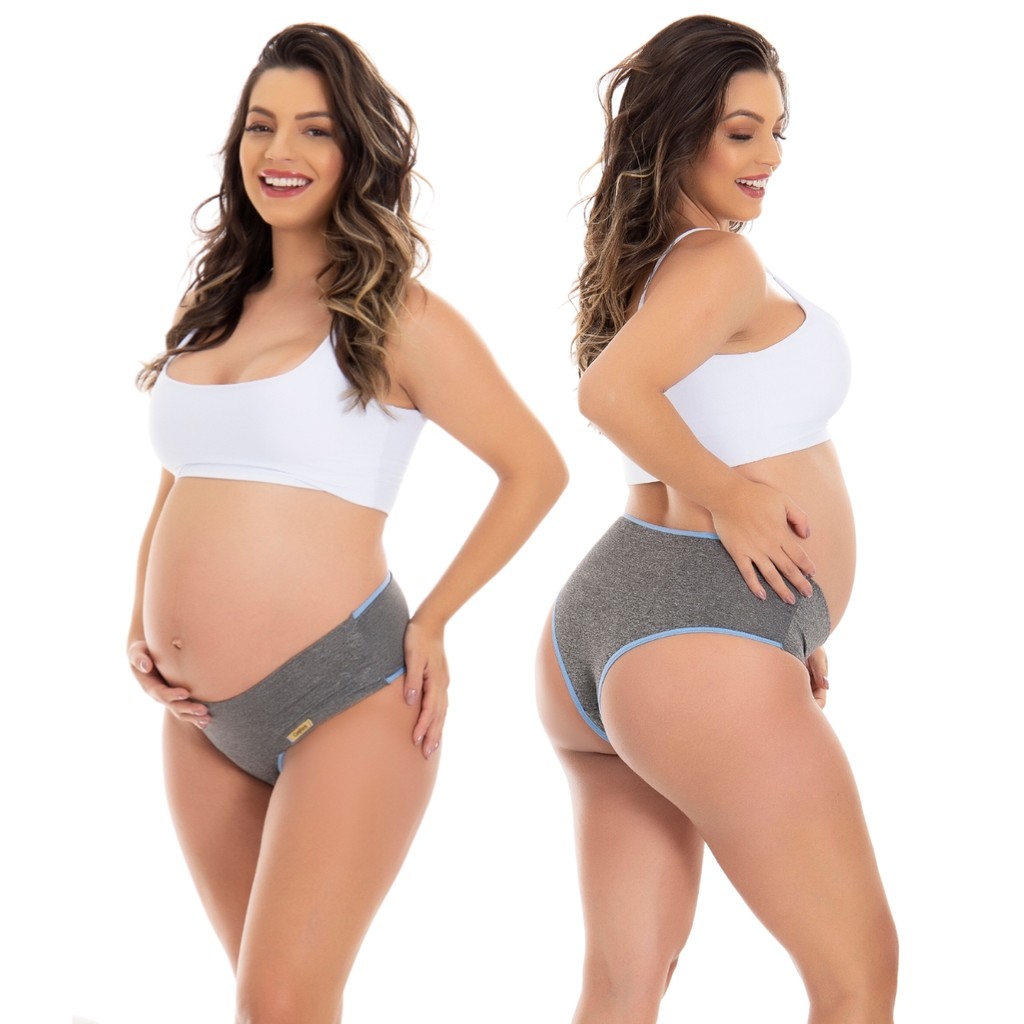 Kit 3 Cinta de Algodão com Detalhe em Renda Calcinha Cós Alto Gestante Karen