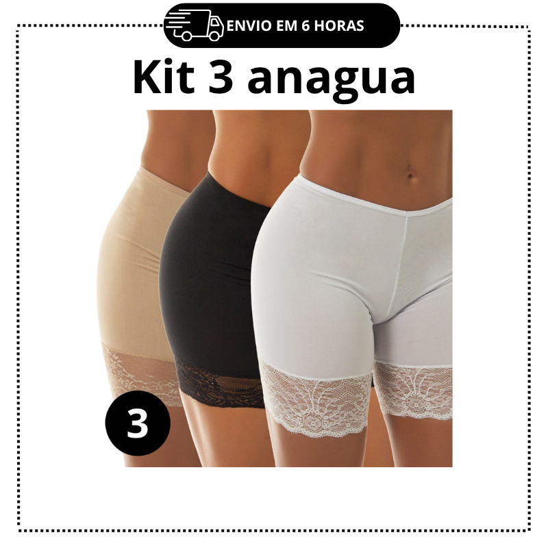 Comprar na ShopeeKit 3 Short Anágua Segunda Pele C/Renda Segunda Pele Feminino Sexy Lingerie