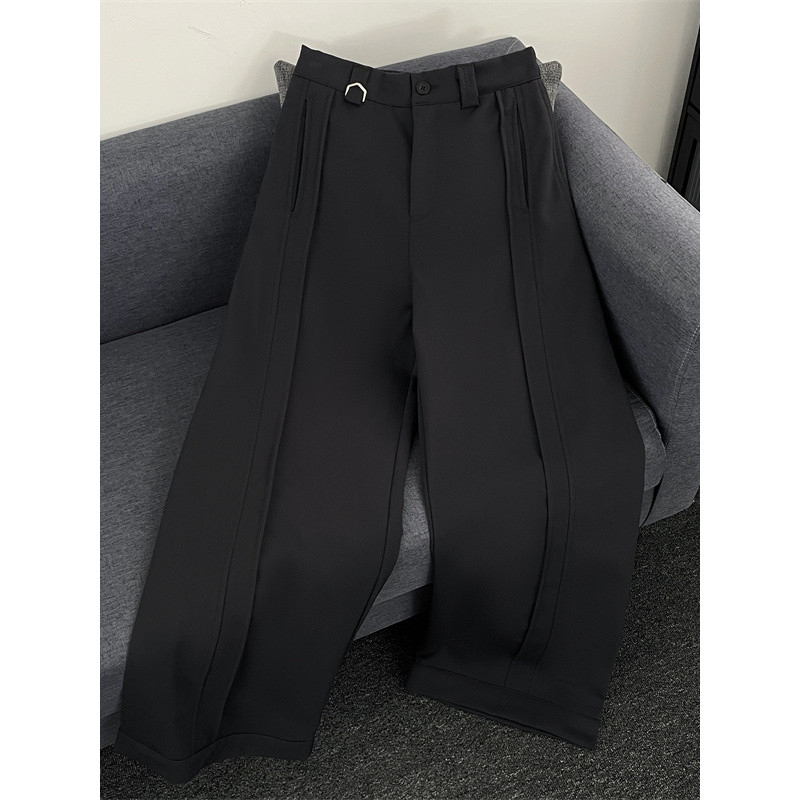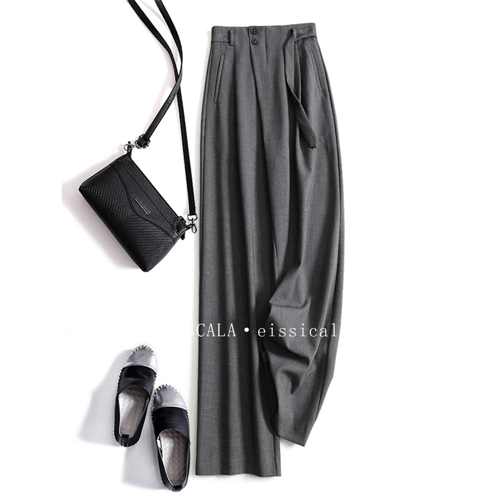 2025 novo estilo cinza terno calças verão High-End Drape mais magro olhar calças casuais em linha reta calças de perna l