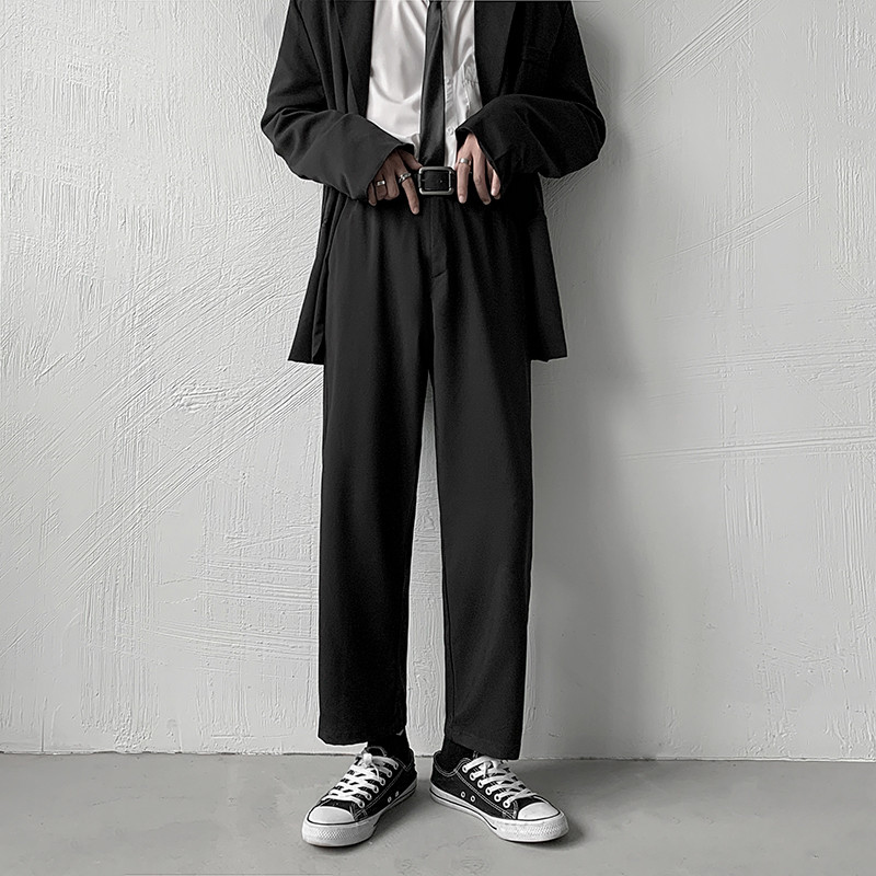 Calças de cintura Semi-elásticas masculinas estilo Hong Kong Drape calças retas primavera novo estilo juventude na moda