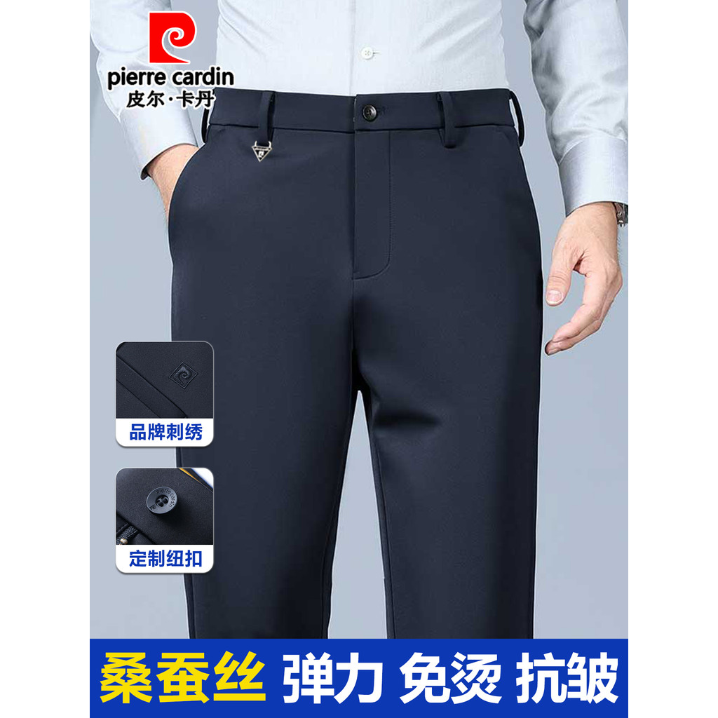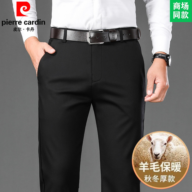 Pierre Cardansang seda calças casuais masculinas outono inverno grosso estiramento não-ferro calças retas calças de negó