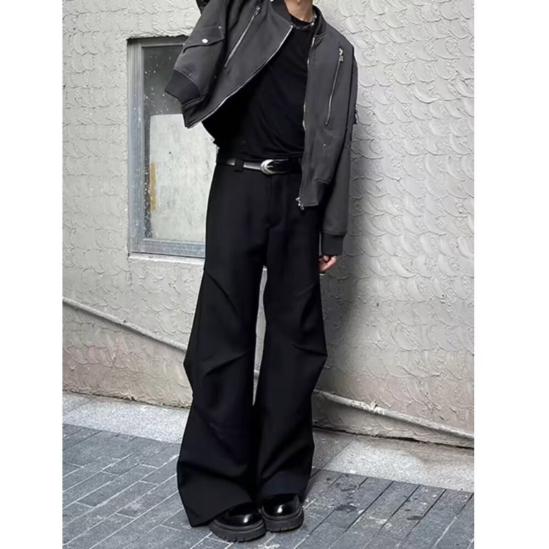 Cleanfit Micro queimado calças plissadas masculinas primavera outono preto macacão calças de perna larga estilo american