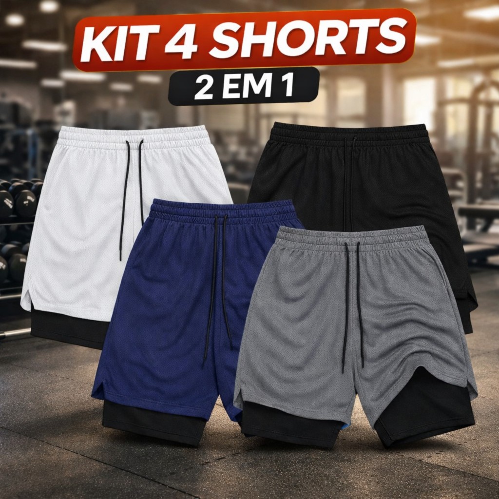 Comprar na ShopeeKit 4 Shorts Masculino 2 em 1 Academia Fitness com Elastano Secagem Rápida