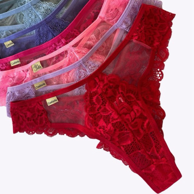 Comprar na ShopeeKit 5 Calcinha Sex Renda Fio Dental Glamour Tule Transparente Feminino lingerie Tanga Qualidade