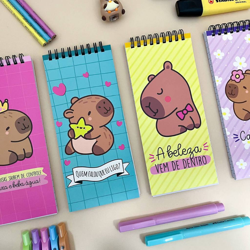 Caderneta de Anotações Espiral Capivara 9 x 20 cm 80 Folhas - Importado