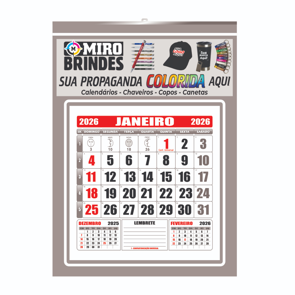 50 Folhinha Calendário Personalizado Comercial 27x37 Parede