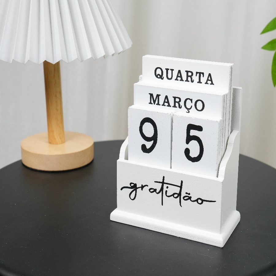 Comprar na ShopeeCalendário Branco De Mesa De MDF 15x6.5x13Cm Com Frase Decorativo Permanente Madeira
