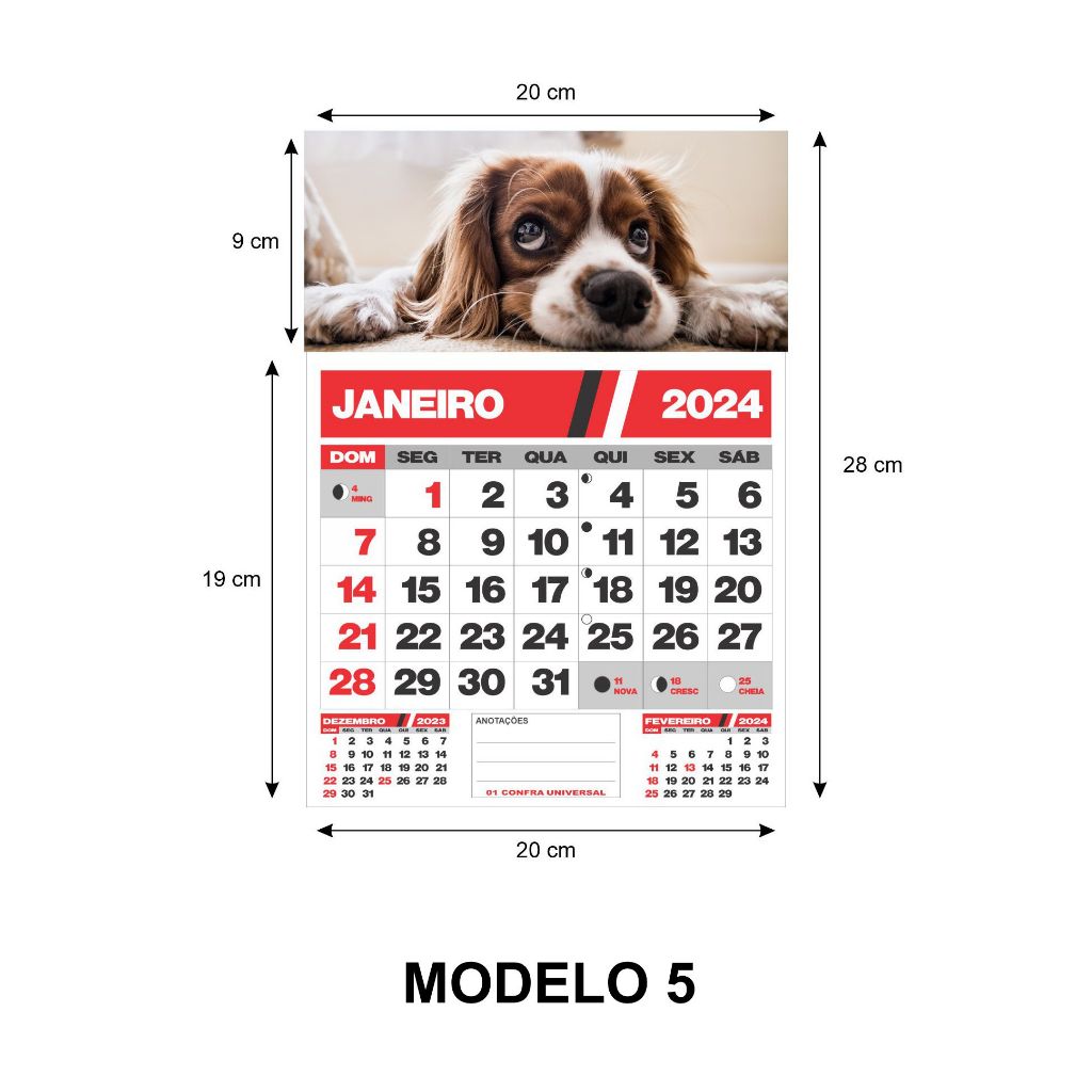 Calendário Folhinha de Parede 20x28 cm 2026 c/ Bloco 12 Meses