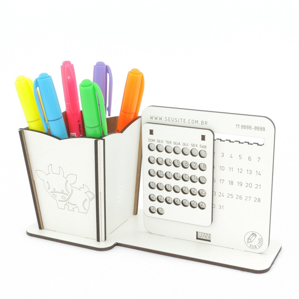 5 Calendário Infinito e Porta Lápis Personalizado Mdf - Boi