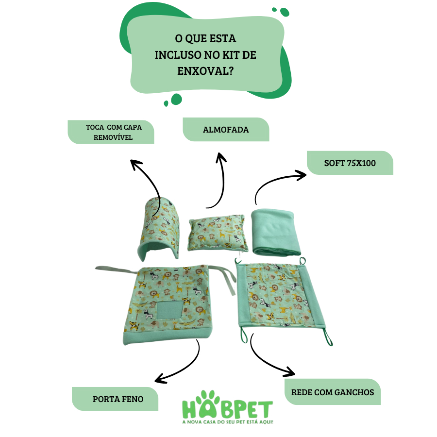 Comprar na ShopeeEnxoval para cercado de porquinho da inicia com 5 peças. Toca, rede, porta feno almofada e Soft