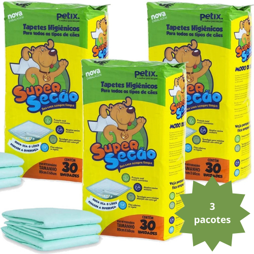 Comprar na ShopeeTapete Higiênico Super Secão 80x60cm C/ 30/60/90 Unidades - Petix
