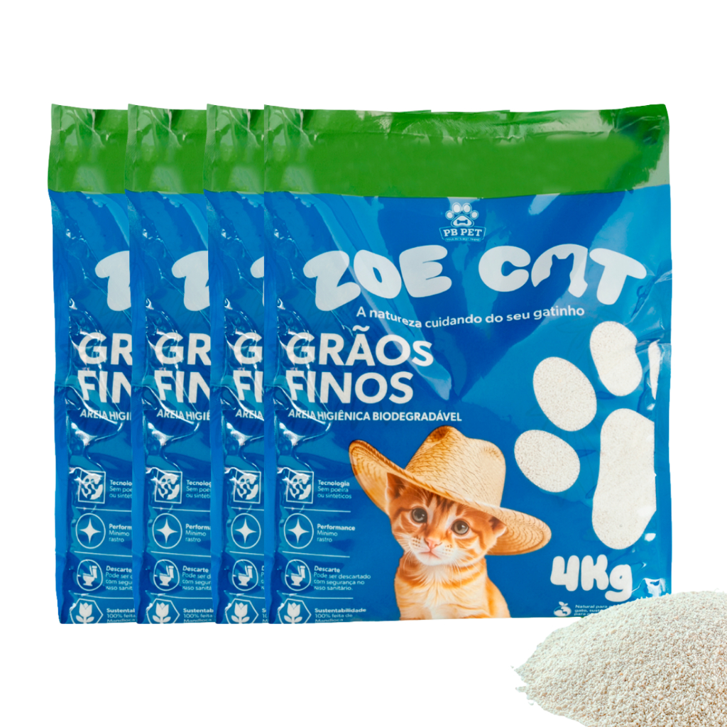 Comprar na ShopeeKit 4 Areias 4kg Biodegradável 100% Mandioca Zoecat Para Gatos Felinos Vegana Ultra-Aglutinante