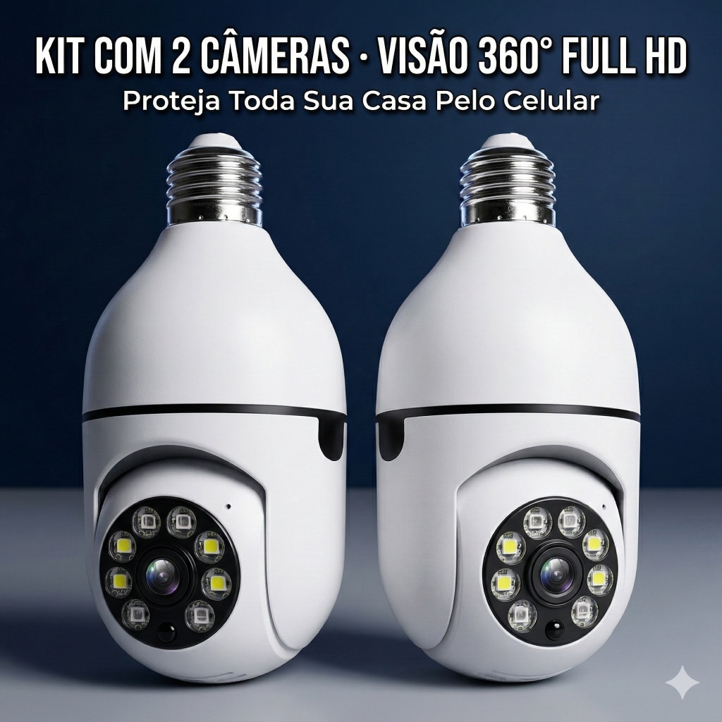 Kit 2 Câmeras Segurança Lâmpada IP WiFi 360° Visão Noturna App Yoosee