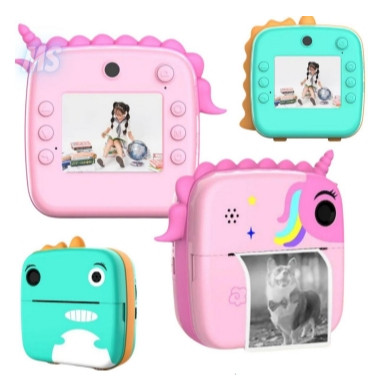Câmera Impressora Para Crianças Fotográfica Digital Vídeo Unicórnio Dinosauro