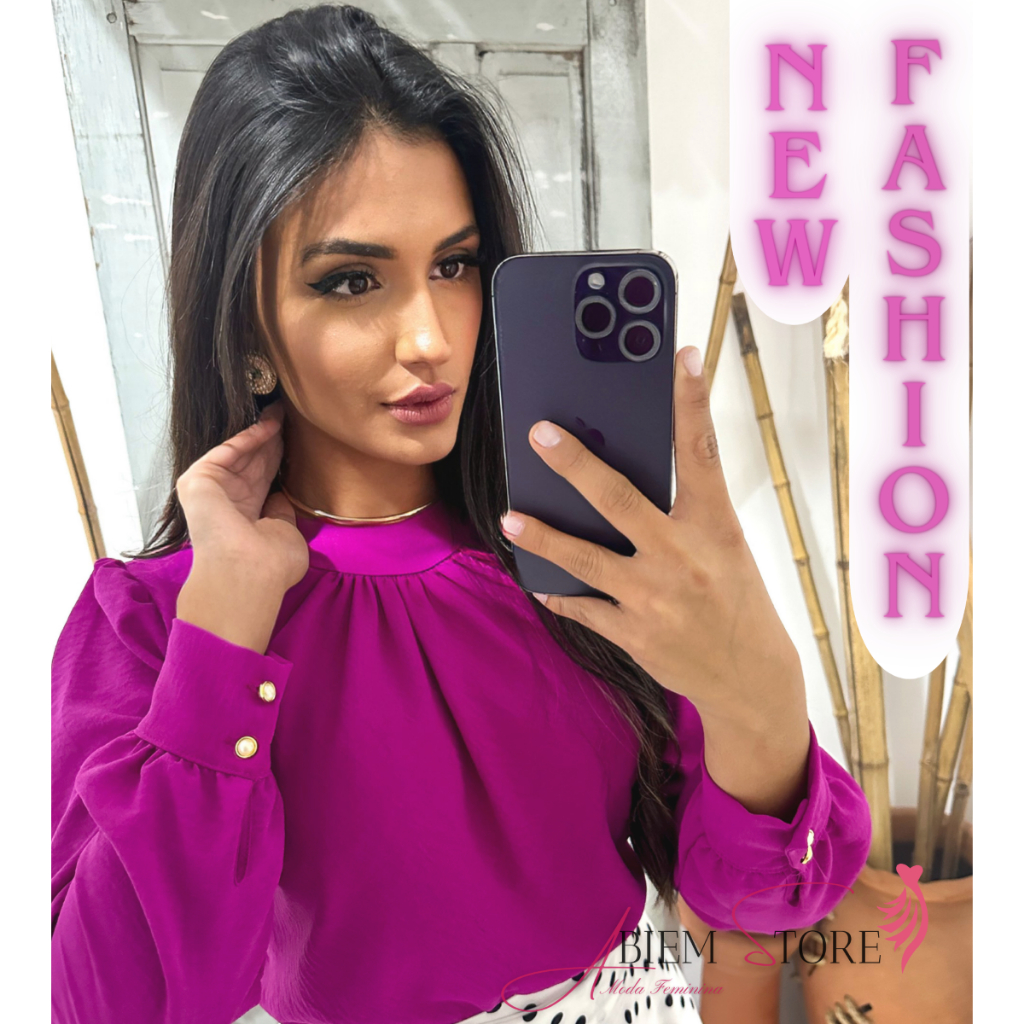 Comprar na ShopeeBlusa Feminina Manga Longa Social Elegante Gola Redonda Botão Duna Feminina Evangélica Soltinha