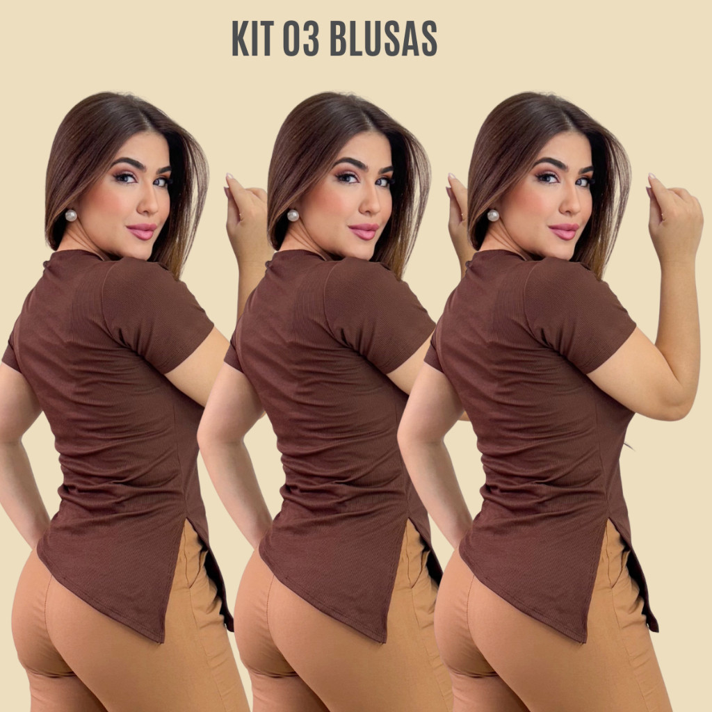 Comprar na ShopeeKit 3 Blusas Feminina Social Gola Alta Tecido Dunas Elegante
