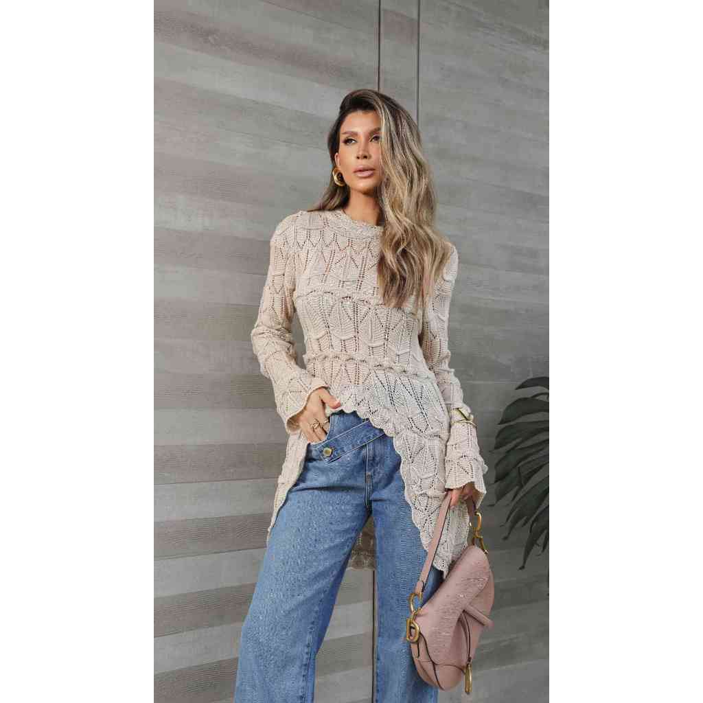 Comprar na ShopeeBlusa De Frio Feminina Rendada Tricot Mullet Boho Chic Gola Redonda Com Babado Outono Inverno