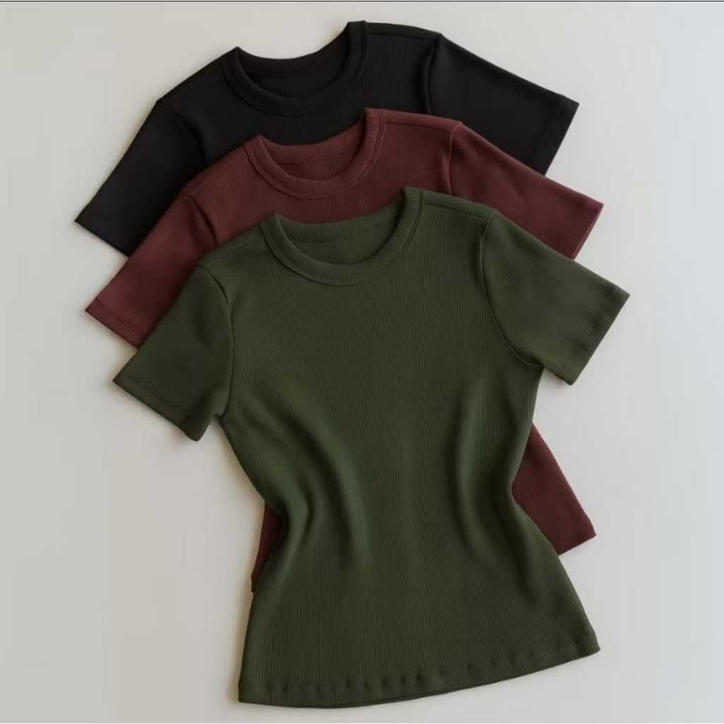 Kit 3 Blusas Feminina Plus Size Manga Curta Ribana Gola Redonda Básica Manguinha Casual e Elegante G1 ao G3 P005