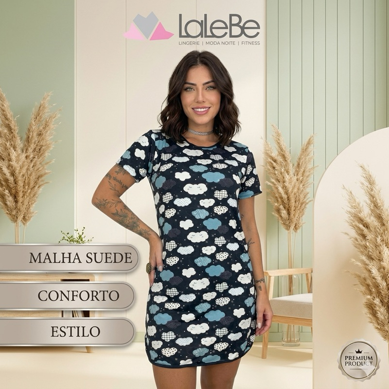 Comprar na ShopeePijama Camisola Feminina Malha Suede Vestido Paula Feminino Confortável Manga Curta Comportada