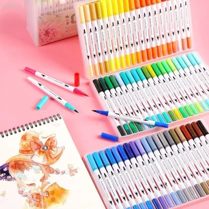 Comprar na ShopeeCaneta Brush Pen Kit Com 12/24/36/48/Cores com ponta dupla pincel estilo