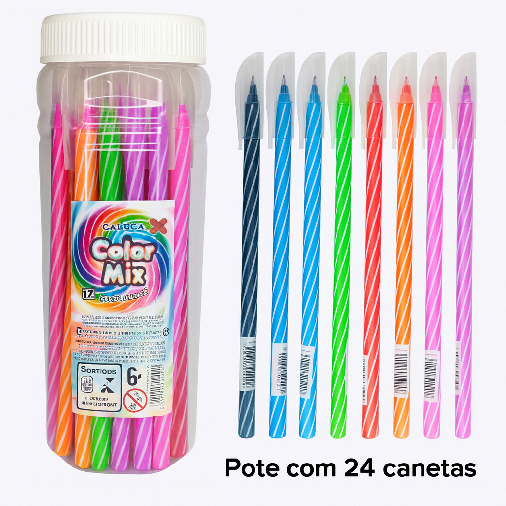 Kit com 24 Canetas Esferografica Tipo Spiro 0.7mm Ponta Fina Agulha