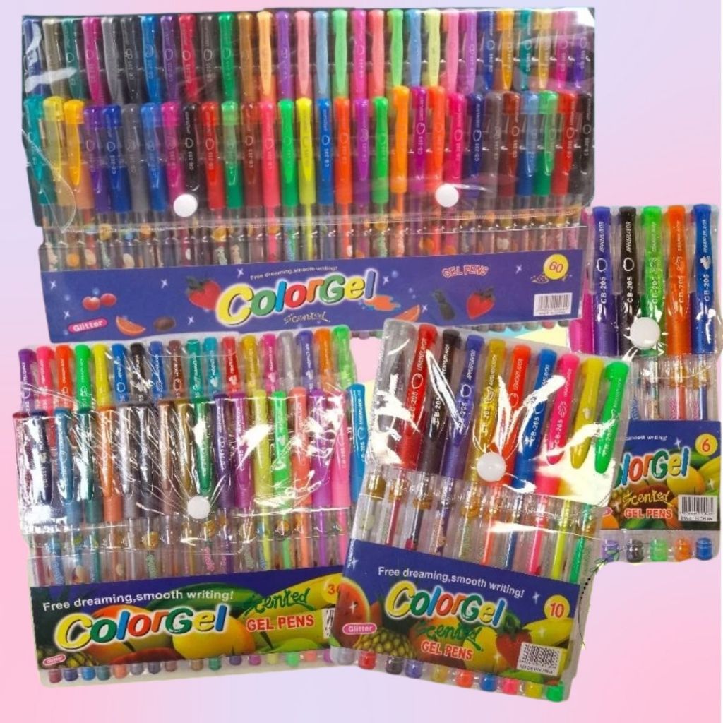 Comprar na ShopeeKit com 6/12/24/48/60 Canetas Gel Cheirinho de Frutas Colorgel Perfumadas Neon Tons Pastel