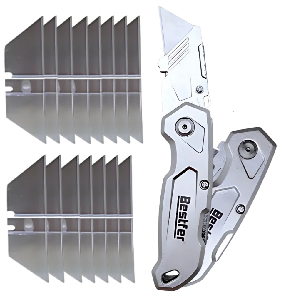 Comprar na ShopeeEstilete Profissional Retratil Trapezoidal De Segurança Com 3 Lâminas Metal Reforçado Dobrável