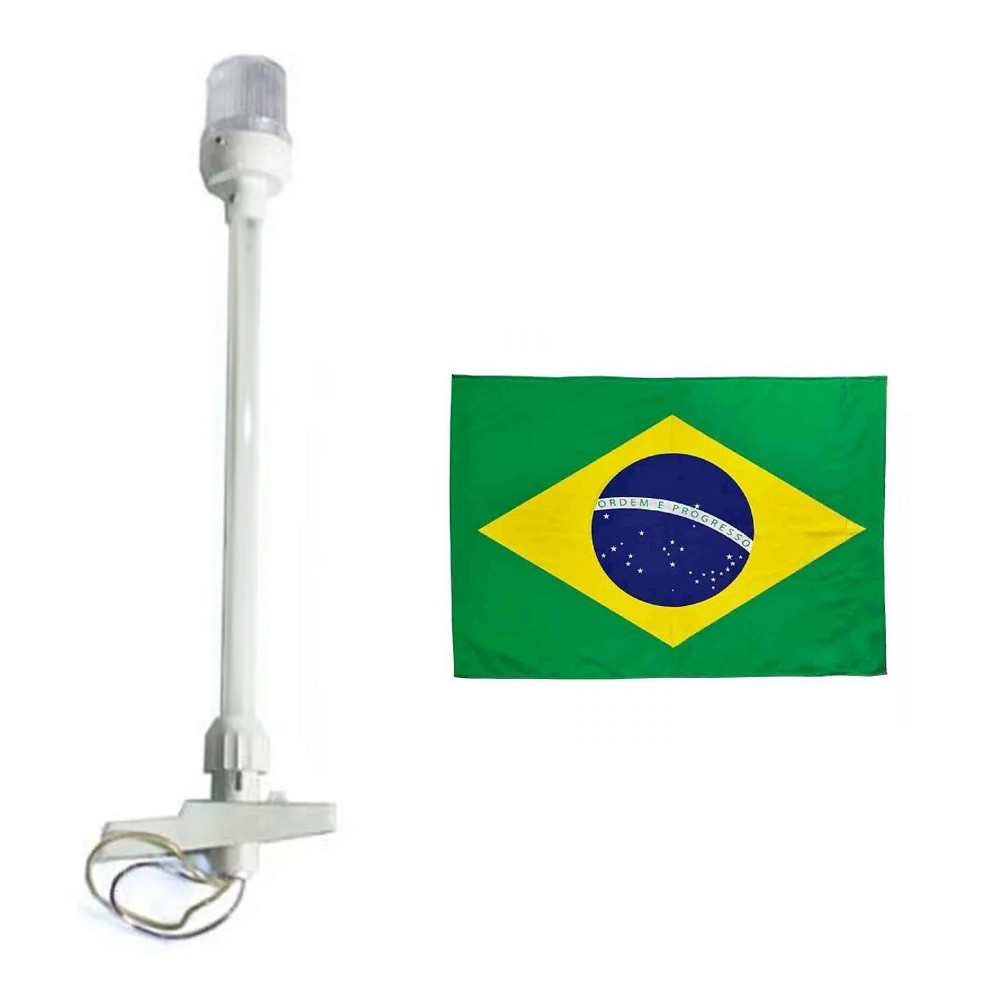 Mastro Estrobo Retrátil Branco Alcançado Fundeio e Bandeira do Brasil - Barco Lancha Veleiro Pesca