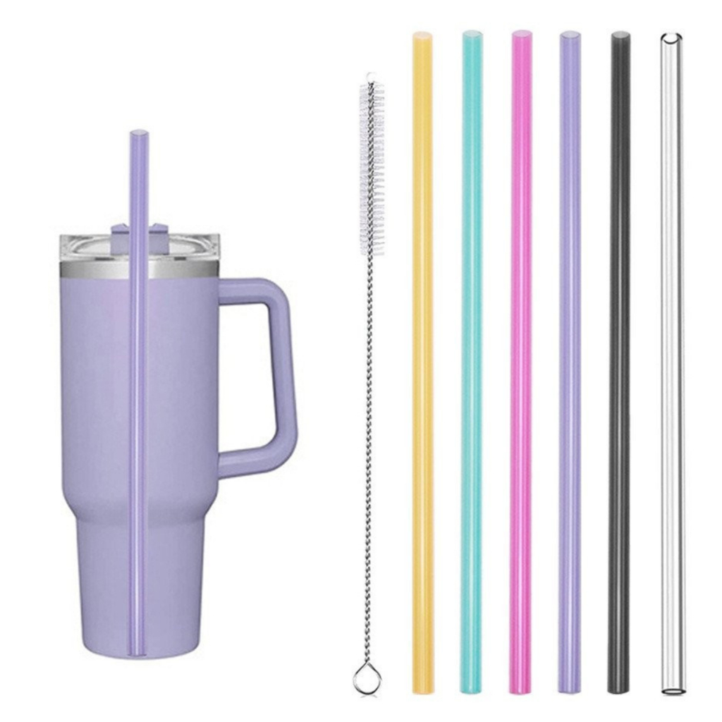Kit 2 Canudos Substituição Tritan 31cm E 1 Escova De Limpeza Para Copo Térmico Reposição Canudo Colorido Transparente