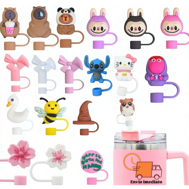 Comprar na ShopeeTampa Canudo 8mm Kawaii Silicone Protetor Fofo Anti Poeira🥰