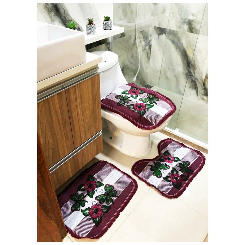 Comprar na ShopeeJogo Tapete de Banheiro Estampado Kit com 3 Peças Cores e Estampas Variadas