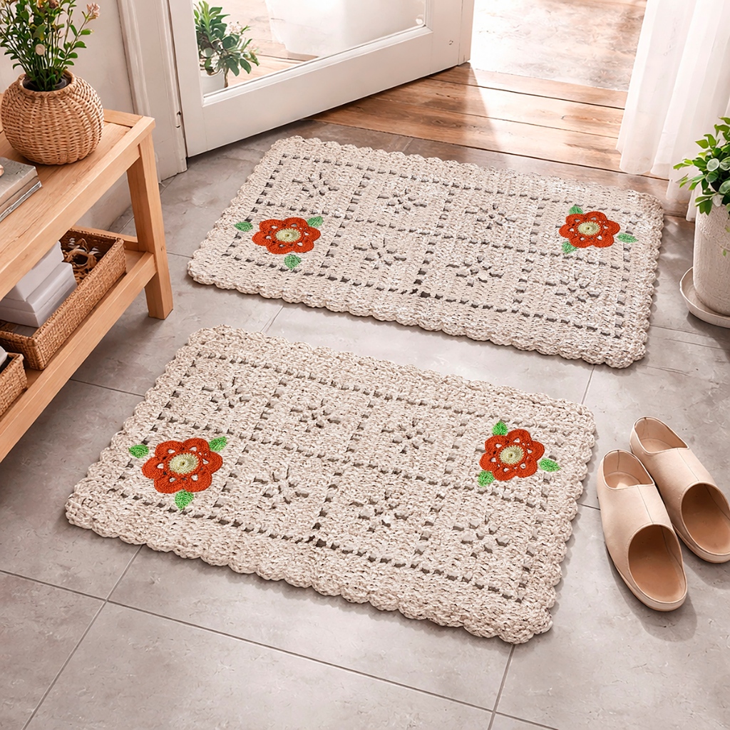 Comprar na ShopeeKit 2 Tapetes Capacho Aranha Bordado 65cm x40 cm 99% Algodão 1% Polipropileno Artesanal Decorativo Lavável Entrada