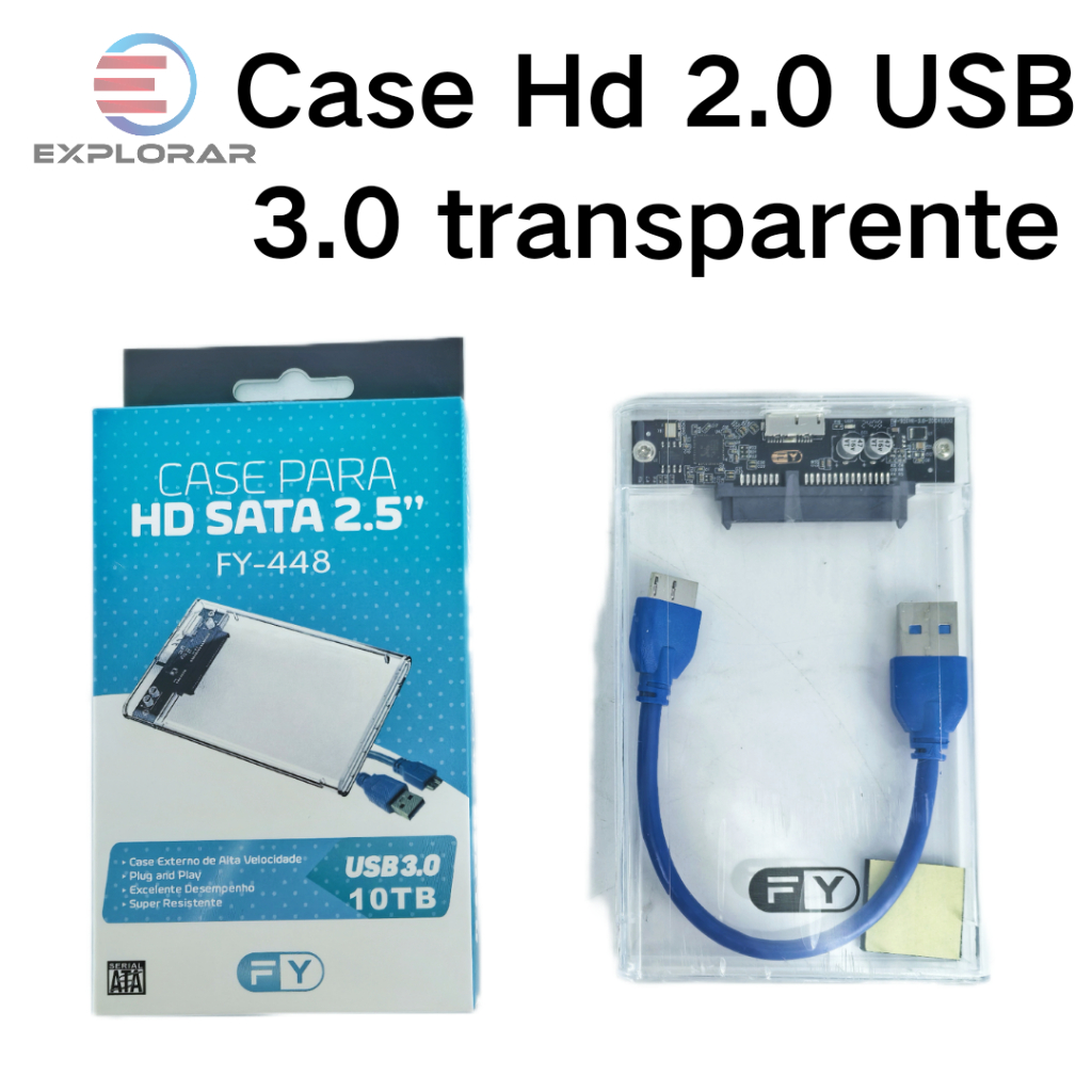 Case Externa para SSD/HD SATA 2.5 transparente com USB 2.5 com cabo destacável
