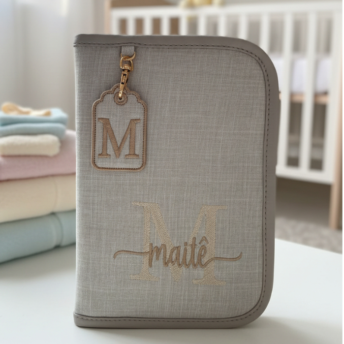 Capa Caderneta Vacina Personalizada Com Nome Porta Documentos Linho Luxo