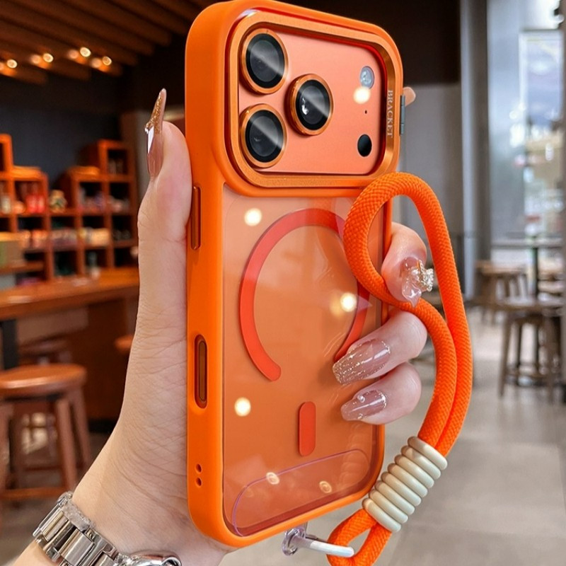 Comprar na ShopeeCom Cordão Laranja Transparente Magnético Caso De Telefone Para iPhone 17 11 12 13 14 15 16 Pro Max Plus 17Air Lente Fli