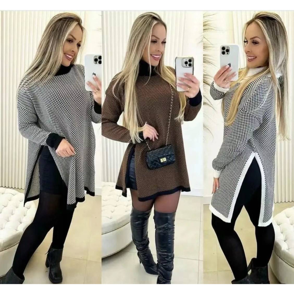 Poncho Tricot Estiloso Manga Longa Premium Confortáveis Soltinho Moda Inverno Outono Feminina