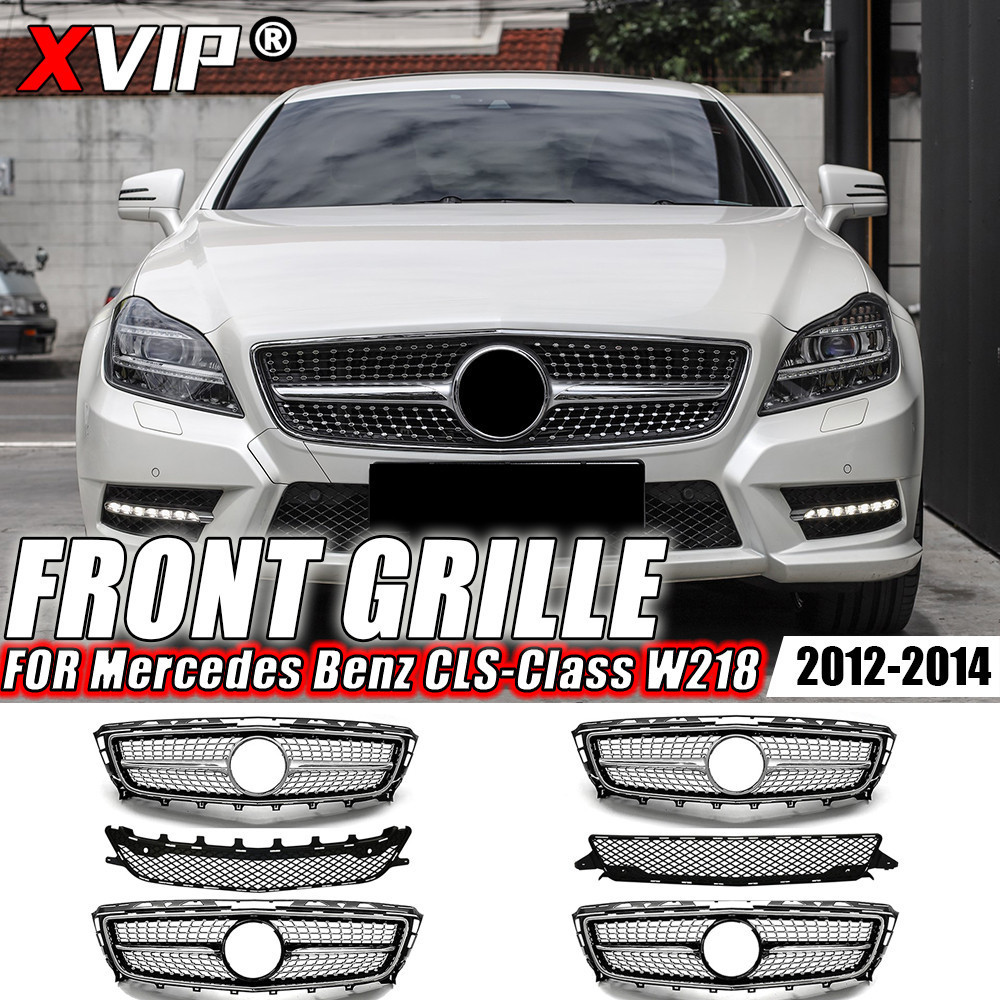 XVIP Grade Dianteira De Corrida Estilo GTR , Cromada , Prateada , Para Mercedes Benz CLS-Class W218 CLS350 CLS500 CLS550